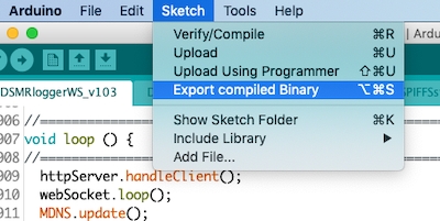 De firmware wordt nu gecompileerd en in de Arduino Sketch map waar de DSMRlogger32 firmware ook staat neergezet. Het bestand heet DSMRlogger32.ino.bin