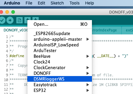 DSMRloggerWS Sketch openen