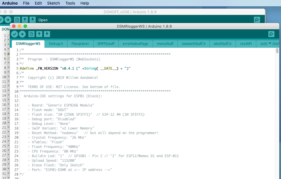 Er verschijnt een nieuw editor window met de firmware van de DSMRlogger!