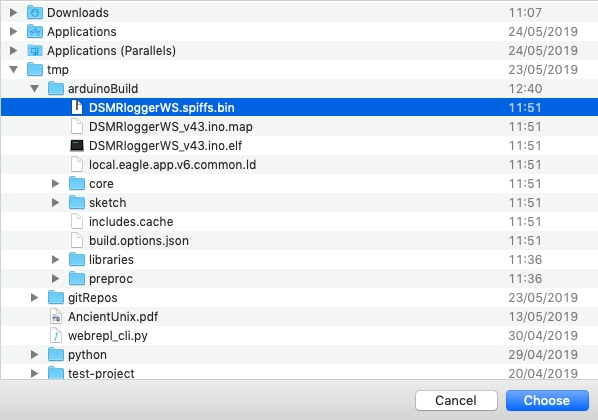 Er verschijnt nu een scherm waarin je een SPIFFS bestand (de naam eindigt op .spiffs.bin