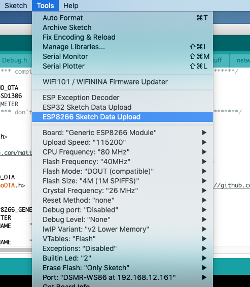 Start vervolgens het ESP8266 Sketch Data Upload-tool