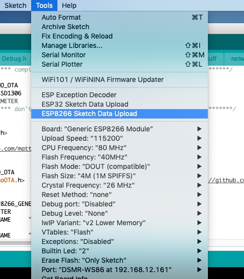Let op!Hou er rekening mee dat eventuele data-bestanden die al op SPIFFS stonden nu weg zijn! Als je ze niet kwijt wil moet je er eerst een kopie van maken op je computer en deze, na het flashen van SPIFFS weer terug zetten (dat kan met de DSMR-logger FSexplorer )!