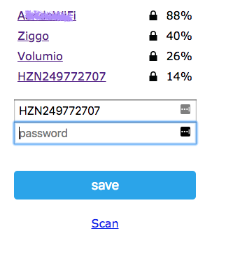 http://192.168.4.1/waarna er een pagina verschijnt waarin je je WiFi netwerk kunt selecteren en het bijbehorende wachtwoord kunt invoeren.