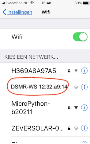Als daar een WiFi AP met de naam DSMR-WS xx-yy-zz