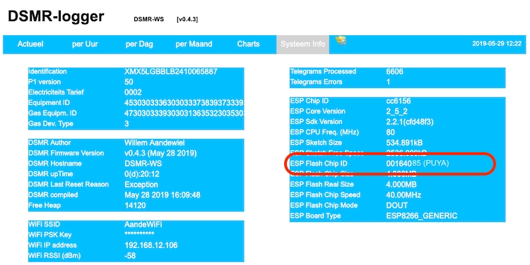 In het Systeem Info scherm (DSMRloggerWS