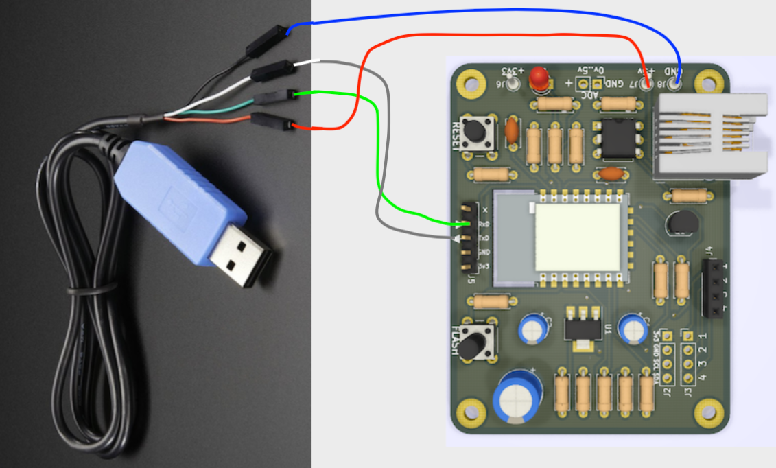 Kan ik met een 5 volt USB to TTL adaptor de DSMR-logger flashen?Als het een type is dat de TX en RX signalen op 3v3 levert (bijvoorbeeld deze) dan kán het wel, maar moet je de 5 Volt output op de 5 Volt pin van de DSMR-logger aansluiten. Je moet hem dan zoals in het plaatje hieronder aansluiten.
