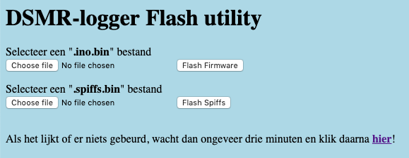 Met deze optie wordt het mogelijk om nieuwe Firmware naar de DSMR-logger te flashen door in de FSexplorer op de knop [Update Firmware] te klikken