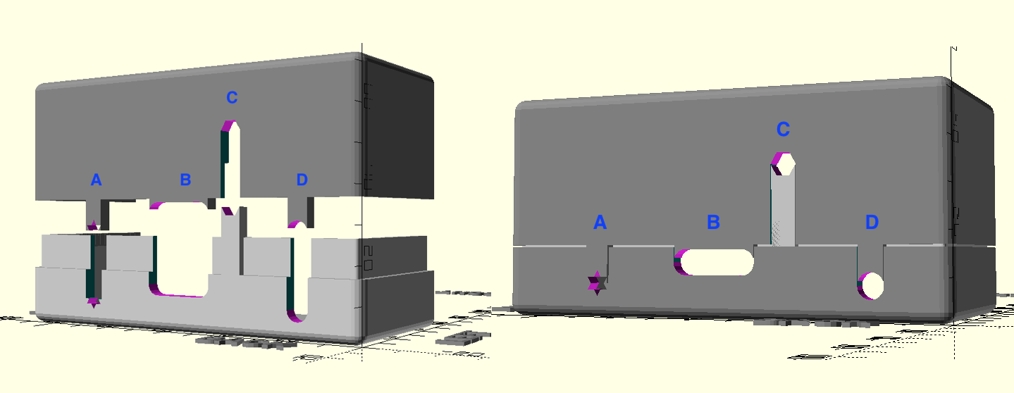 The Ridge Extension provides a local shift to the split so that you can make any opening on the sides of the case that is half in the lid and half in the base.